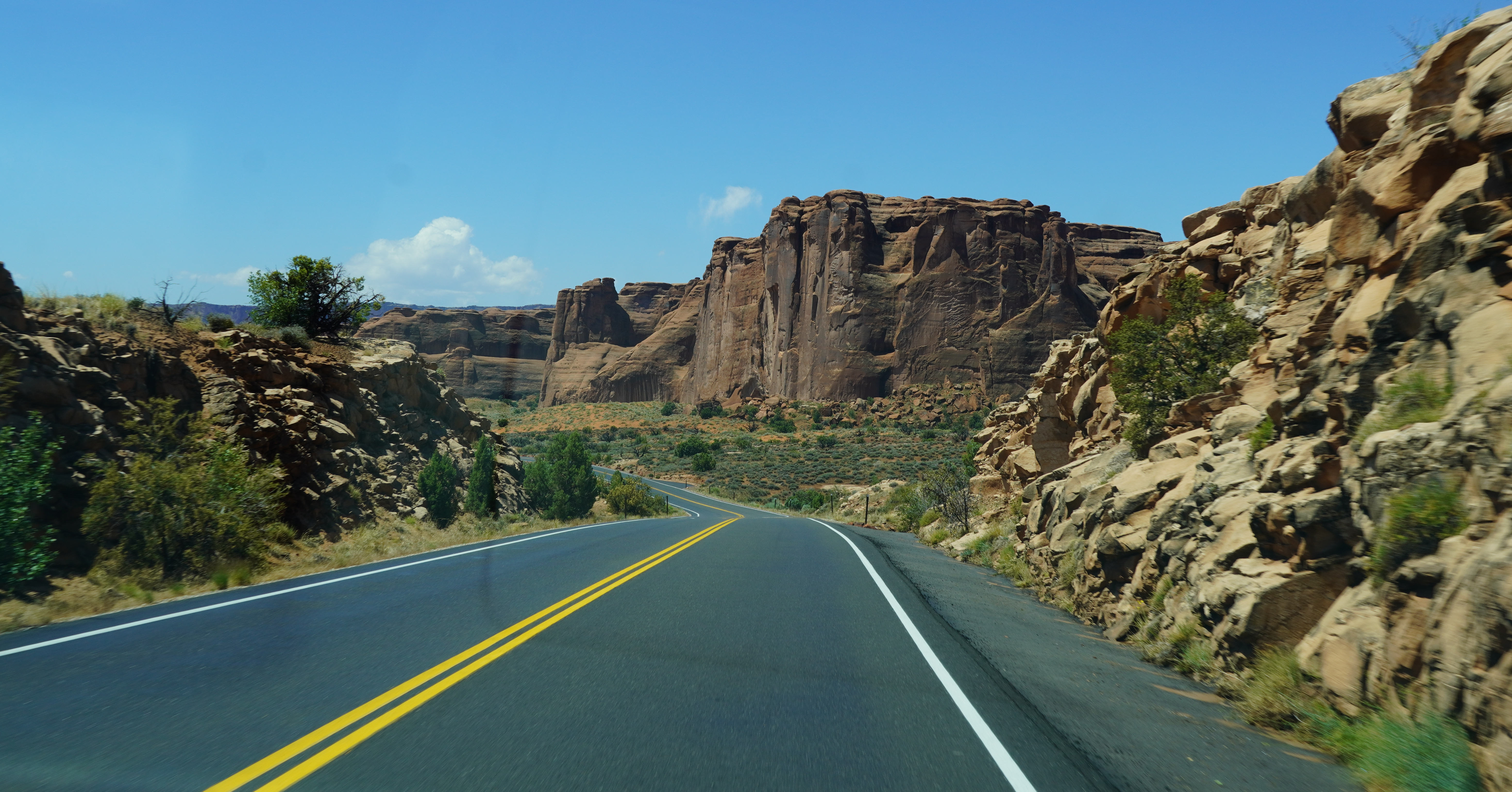 A mentioned earlier, we experienced Utah on a cross-country road trip this past June. We were driving East to West from North Carolina to California, so when we entered the state of Utah we chose to start in Moab. Moab is actually a decent sized town with a main ‘strip’ hosting dozens of restaurants, bars, rental shops, & more. We arrived around 10pm into town with every intention of car camping, but Mother Nature had different plans; howling winds, thunderstorms, and flash flood warnings made us think twice about parking off the grid and so we settled by booking a hotel room for 2 nights at the end of town called the Aarchway Inn.