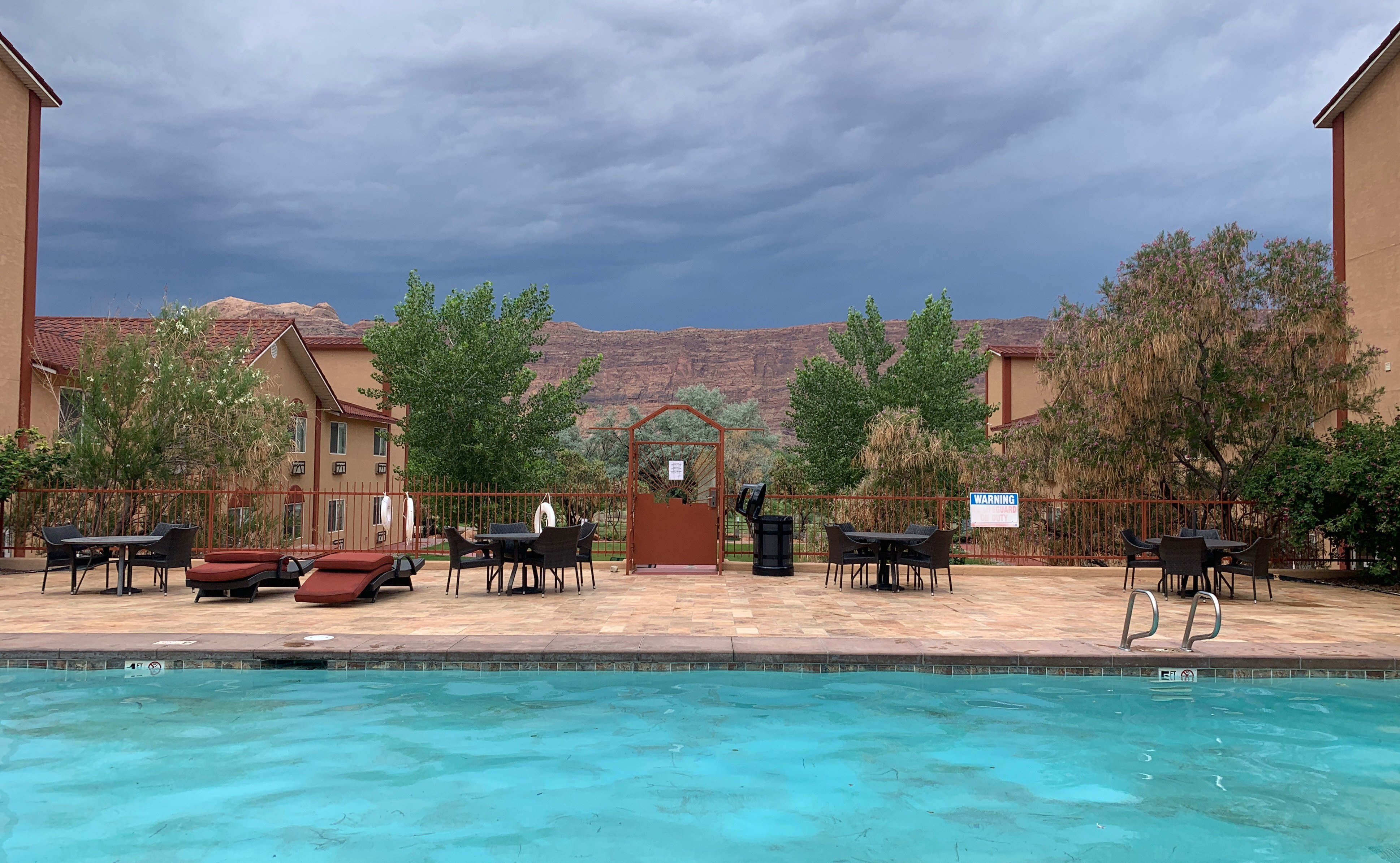 We found the hotel by searching last minute on hotels.com and chose it because it looked clean, had free breakfast, a laundry area, and was super close to Arches National Park (2 miles to the entrance). We were seriously impressed with this place for the cost and found it to be an extremely good deal. A short list of amenities includes : outdoor pool, hot tub, horse shoe course, playground, basketball courts, and a beautiful river walkway.